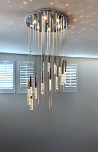 Professional installation of all lighting types including pendant lights, downlights, oyster lights, and chandeliers for homes, renovations, and commercial spaces.
