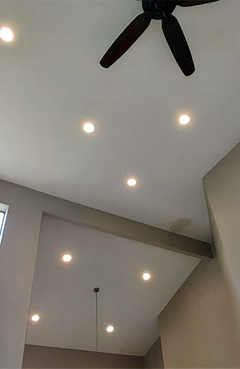 Professional installation of ceiling fans with integrated lighting, providing efficient airflow and illumination ideal for bedrooms and living areas.